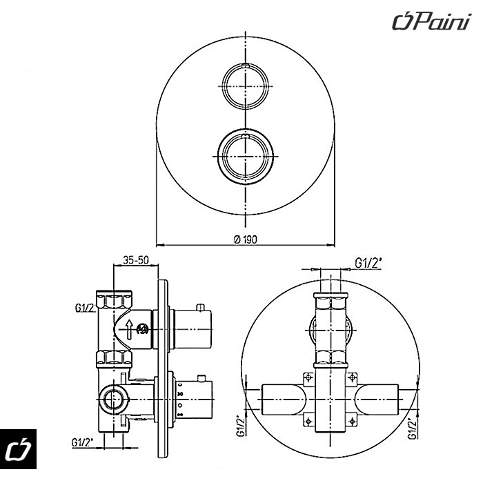 Model PAINI COX (šifra 78CR690TH) je ugradna baterija termostatskog tipa, idealna za skriveni („concealed”) sistem u kupatilima.