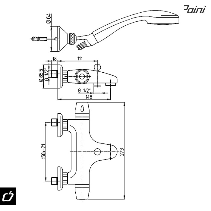 Model PAINI 2TCR105TH, visoko kvalitetna baterija termostatska dizajniranu za ugradnju na zid, koja omogućava kako siguran i stabilan protok vode, tako i jednostavnu upotrebu.