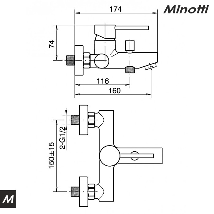 • MINOTTI slavina sa integrisanim mešačem i prebacivačem za kadu/tuš.
