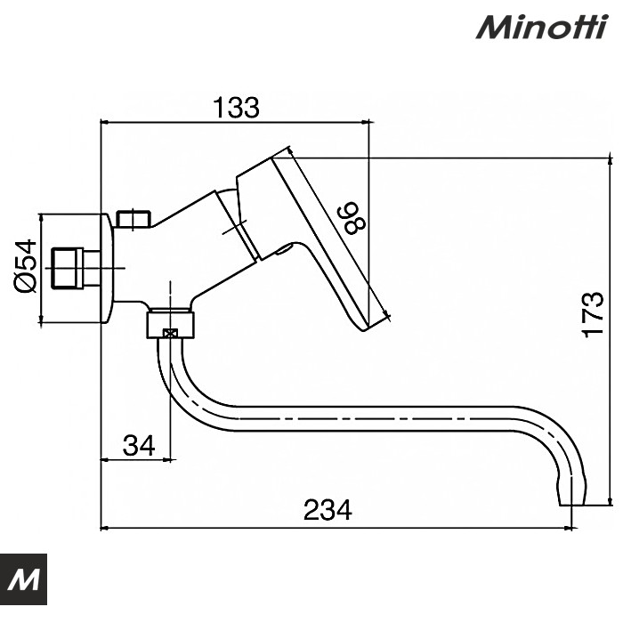 Proizvođač MINOTTI nudi model iz serije VIVA, model 5517, koji je jednoručna zidna baterija za protočni bojler.