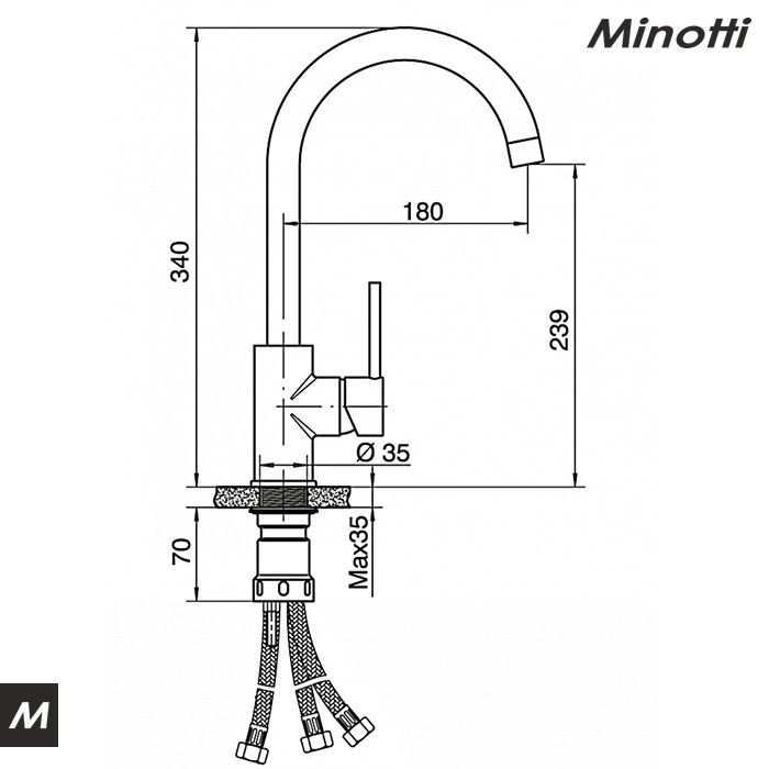 MINOTTI TUBO 6118-3 je visokokvalitetna baterija za sudoperu sa stojećom montažom i priključkom na tri cevi, idealna za kuhinje koje koriste protočne bojlere ili sisteme niskog pritiska. Zahvaljujući visokom labud-izlivu, ovaj model omogućava odlično manevrisanje i maksimalnu funkcionalnost u svakodnevnoj upotrebi.