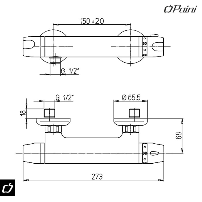 Model PAINI 2TCR511TH je visokokvalitetna termostatska baterija za tuš, namenjena pouzdanoj i sigurnoj instalaciji za tuš i kadu.