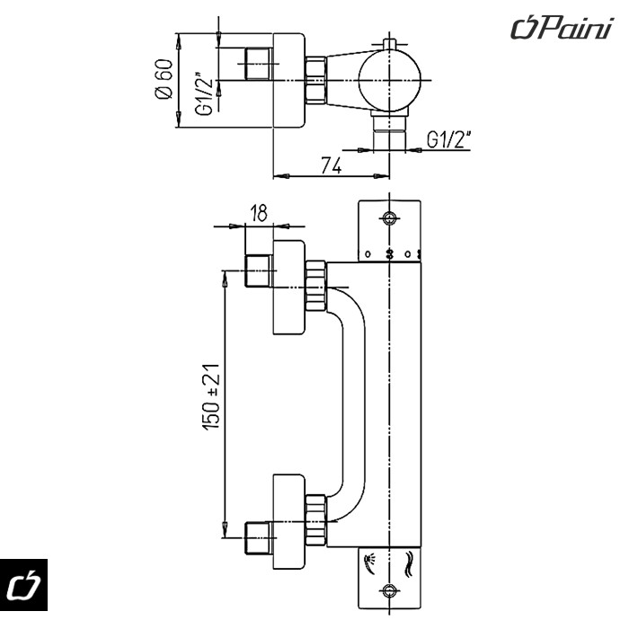 Model PAINI COX (šifra 78CR511TH) je visokokvalitetna termostatska baterija za tuš, dizajnirana za ugradnju u kombinovan sistem tuš-kada.