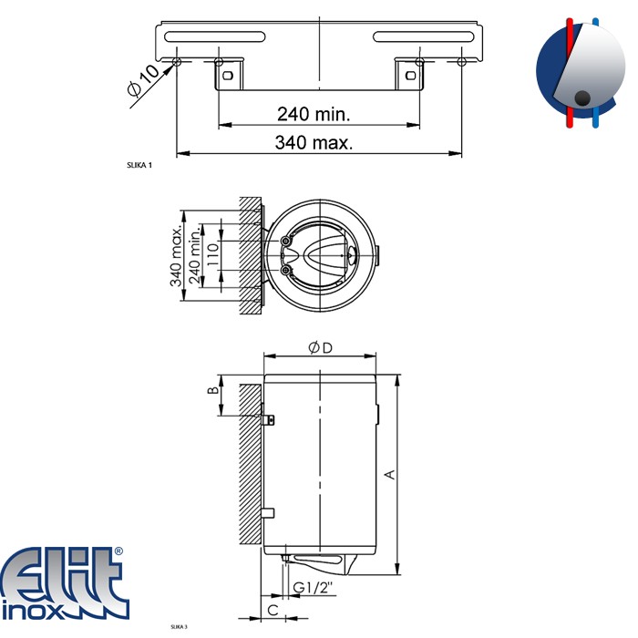 • Konstrukcija kao vertikalni bojler omogućava montažu na zid i male dimenzije u zauzetim prostorima.