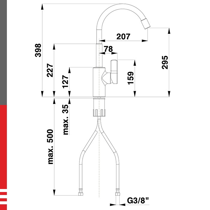 HERZ Elite baterija 01121 FLEX je fleksibilna stajaća baterija za sudoperu elite flex 01121 namenjena za kuhinjske sudopere. Ova baterija za sudoperu 3 cevi 01121 omogućava jednostavno rukovanje i preciznu kontrolu temperature i protoka vode, dok fleksibilni priključci olakšavaju montažu i instalaciju.