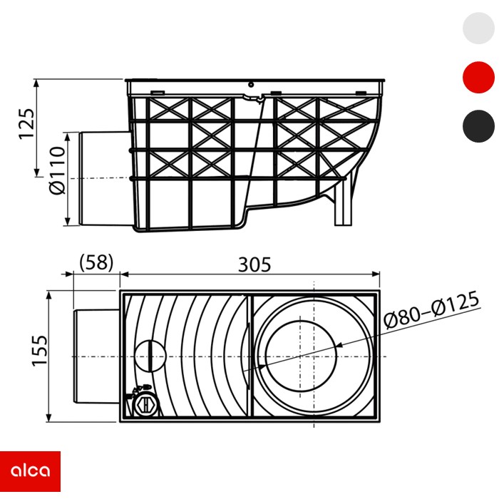 Olučni slivnik ALCA AGV3S namenjen je za odvod atmosferskih voda sa krovova i terasa. Izrađen je od kvalitetnog polipropilena (PP) u sivoj boji, sa bočnim priključkom prečnika Ø110 mm. Ovaj slivnik omogućava pouzdano prikupljanje i usmeravanje kišnice u kanalizacioni sistem, uz visoku otpornost na spoljašnje uticaje i dug radni vek.