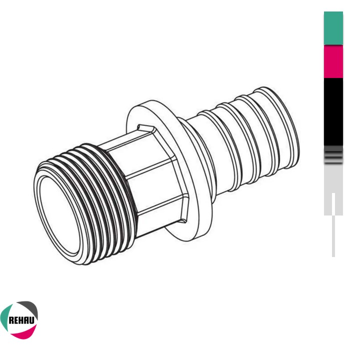 Poluspojnica 32-1 SN RX+ RAUTITAN REHAU koristi se za povezivanje RAUTITAN cevi sa navojnim priključcima u instalacijama pitke vode i grejanja.