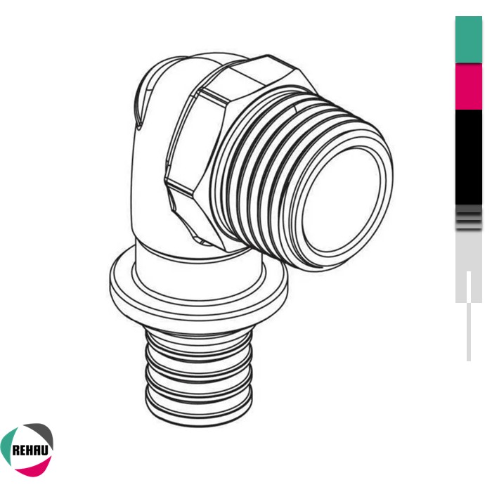 Prelazno koleno 20-1/2 SN RX+ RAUTITAN REHAU koristi se za povezivanje RAUTITAN cevi sa navojnim priključcima u instalacijama pitke vode i grejanja.