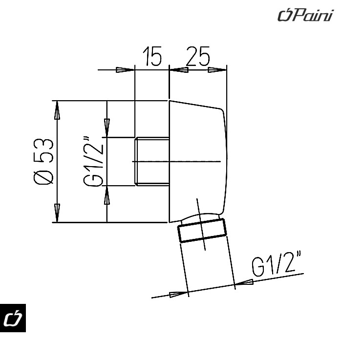 - Ovaj PAINI okrugli priključak proizvodi brend PAINI, sa materijalom mesinga, hromiranom završnom obradom (CR) i fabrički navedenom oznakom 50CR503P.