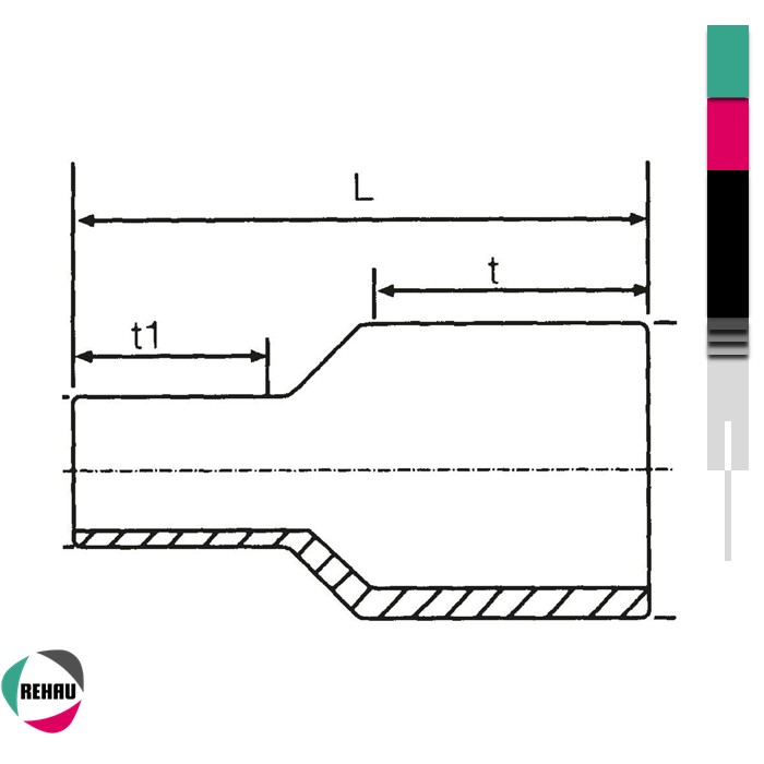 Redukcija 110/75 ESM elektrofuziona REHAU je fiting namenjen za smanjenje prečnika između cevnog voda 110 mm i 75 mm, uz korišćenje elektro-fuzione tehnologije.