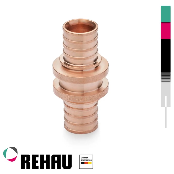 Spojnica 50-50 RX+ RAUTITAN REHAU namenjena je za sigurno povezivanje cevi istog prečnika u sistemima vodovoda i grejanja.