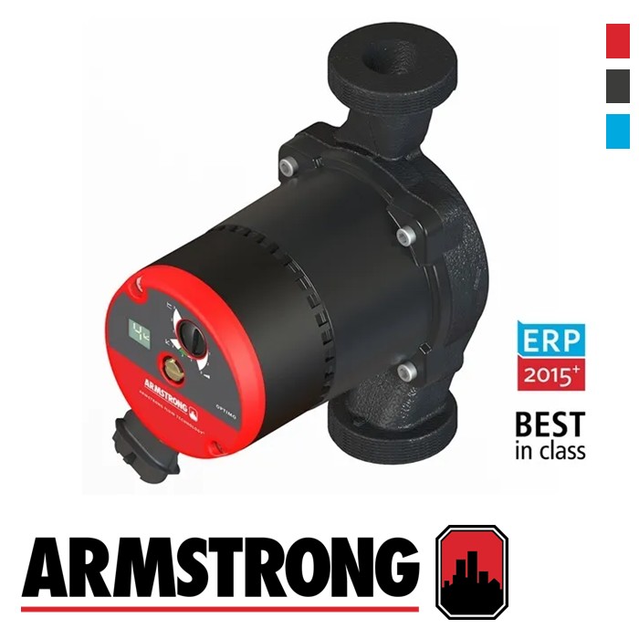 ARMSTRONG Visokoefikasna cirkulaciona pumpa za grejanje i solarnu energiju HEP Optimo Basic (kompatibilna sa ErP/najbolja u klasi) za upotrebu u sistemima sa akumulacionim + radijatorskim + podnim grejanjem i solarnim sistemima sa odgovarajućim režimima upravljanja (fiksna brzina + automatski proporcionalni pritisak + automatski konstantni pritisak), udobnim kontinualnim podešavanjem pomoću višenamenskog dugmeta, opcionim izborom noćnog podešavanja, zavrtnjem za deblokiranje i odzračivanje, ograničenjem struje pokretanja 2,5 A, 230 V 50/60 Hz, klasom zaštite IP 42, klasom izolacije F, temperaturnom klasom TF 110 (temperatura fluida +2 do + 110 °C), nominalnim pritiskom PN10 (maks. pritisak sistema 10 bar), kućište pumpe od livenog gvožđa sa kataforeznim premazom, LED indikator napajanja u dugmetu, prethodno ugrađenim kablom 1m, pojedinačno pakovanje uklj. uputstvo za upotrebu.